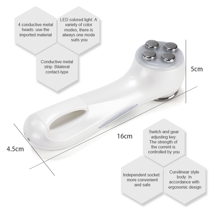 This 6 in 1 RF EMS Mesotherapy Electroporation Device adopt the lower powered LED visible light source, the light is soft, not only can it achieve the cosmetic results, but also does not damage the skin epidermal cells. LED photons can stimulate the deep cells, make the active ingredients of the nutrient solution penetrate to the skin effectively, increase skin elasticity. Therefore, it can repair aging skin and reborn collagen, remove wrinkles and spots, improve skin complexion and lift face.